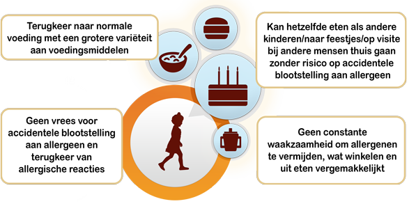 Voor oudere kinderen kan leven met koemelkallergie iets lastiger zijn. Tijdens sociale activiteiten zoals feestjes, neemt het risico op accidentele blootstelling aan koemelk in de voeding toe. Hoewel het vooraf plannen kan helpen om je kind veilig te houden en ervoor te zorgen dat ze niets moeten missen, zou terugkeer naar normale voeding tegen de tijd dat je kind naar school gaat en veel omgaat met andere kinderen een enorme verlichting geven voor het hele gezin.